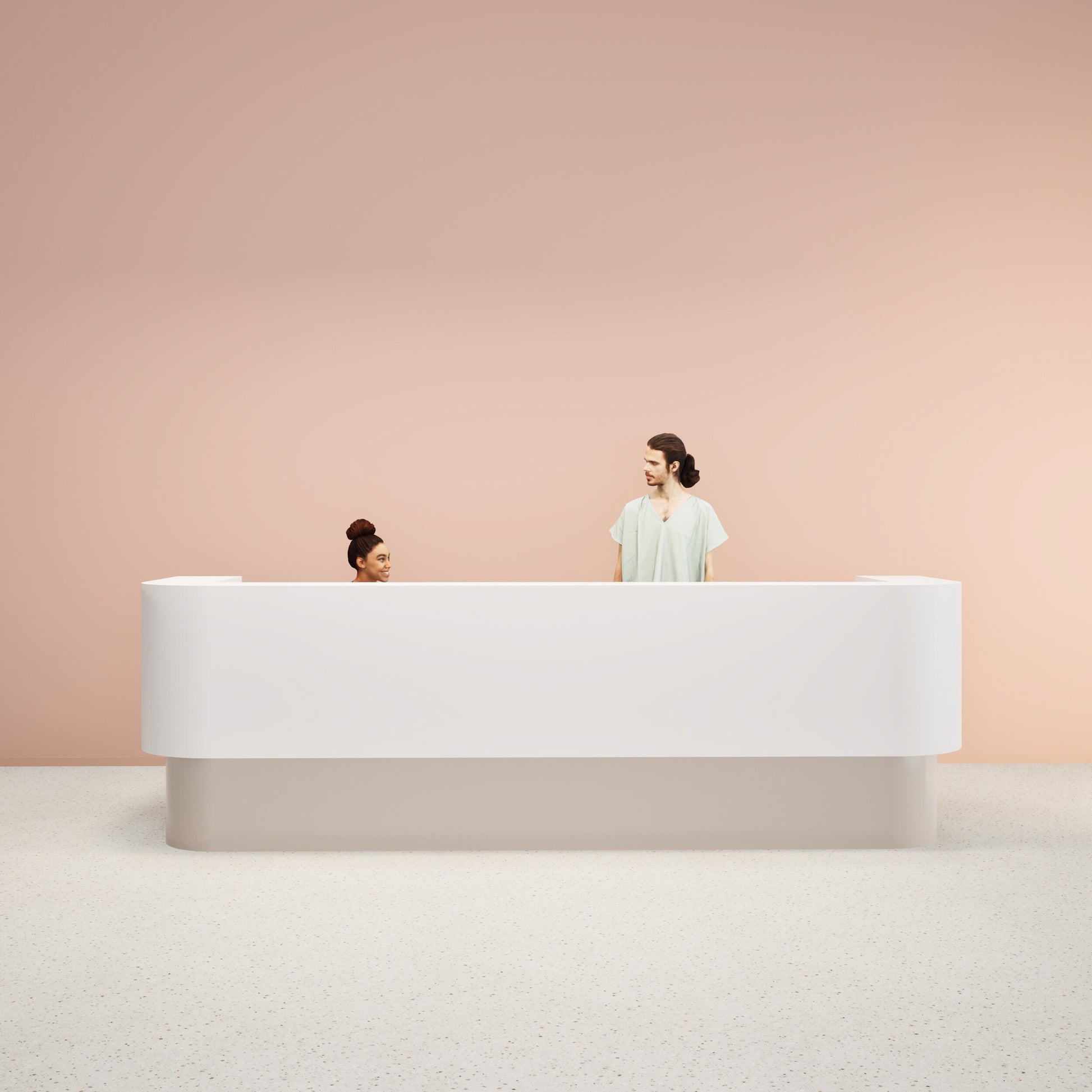 De IS Solid Curve is een vrijstaande balie met vloeiend afgeronde hoeken, volledig uitgevoerd in solid surface. Het naadloze ontwerp draagt bij aan optimale hygiëne en een hoogwaardige uitstraling. Door de zachte vormgeving ontstaat een open en uitnodigende ontvangst, ideaal voor centrale plaatsing in de ruimte.