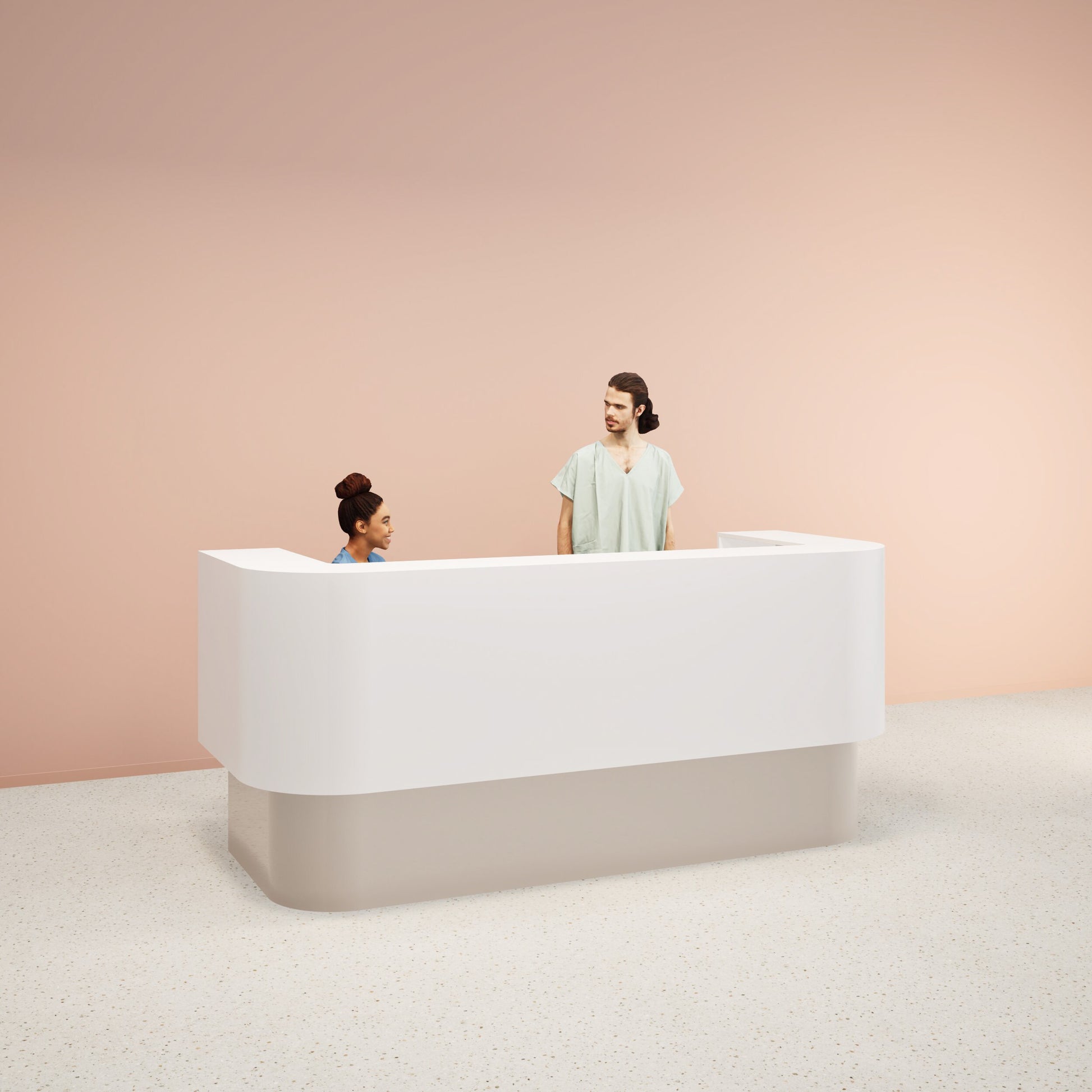 De IS Solid Curve is een vrijstaande balie met vloeiend afgeronde hoeken, volledig uitgevoerd in solid surface. Het naadloze ontwerp draagt bij aan optimale hygiëne en een hoogwaardige uitstraling. Door de zachte vormgeving ontstaat een open en uitnodigende ontvangst, ideaal voor centrale plaatsing in de ruimte.