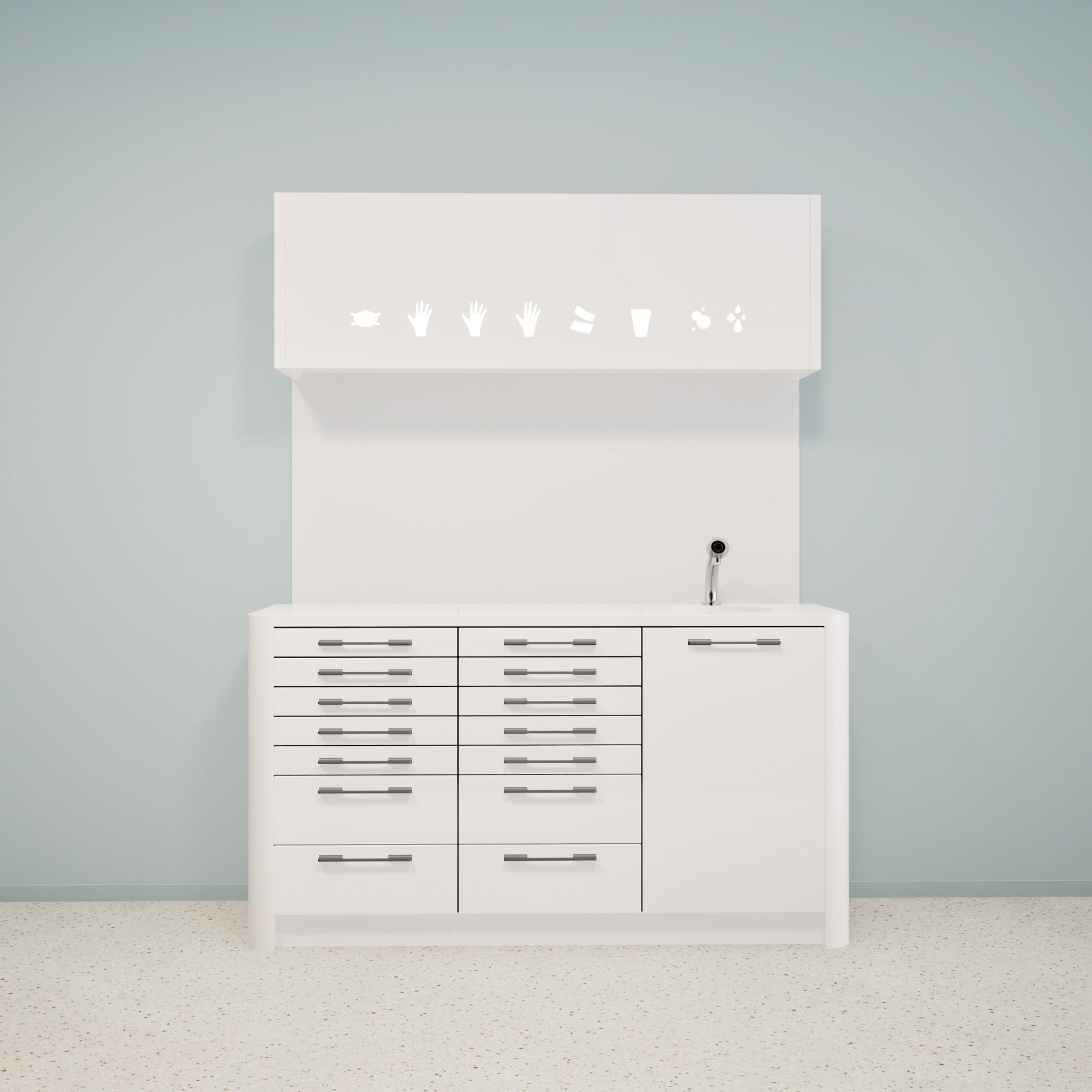 DINA ist ein vielseitiges Behandlungsmöbel, erhältlich als schwebendes und stehendes Modell. Die abgerundeten Fronten der Seitenwände sorgen nicht nur für eine edle Optik, sondern auch für ergonomisches Arbeiten. Komplett aus Solid Surface gefertigt, ist Dina strapazierfähig, hygienisch und pflegeleicht – perfekt für den intensiven Einsatz in der Praxis.