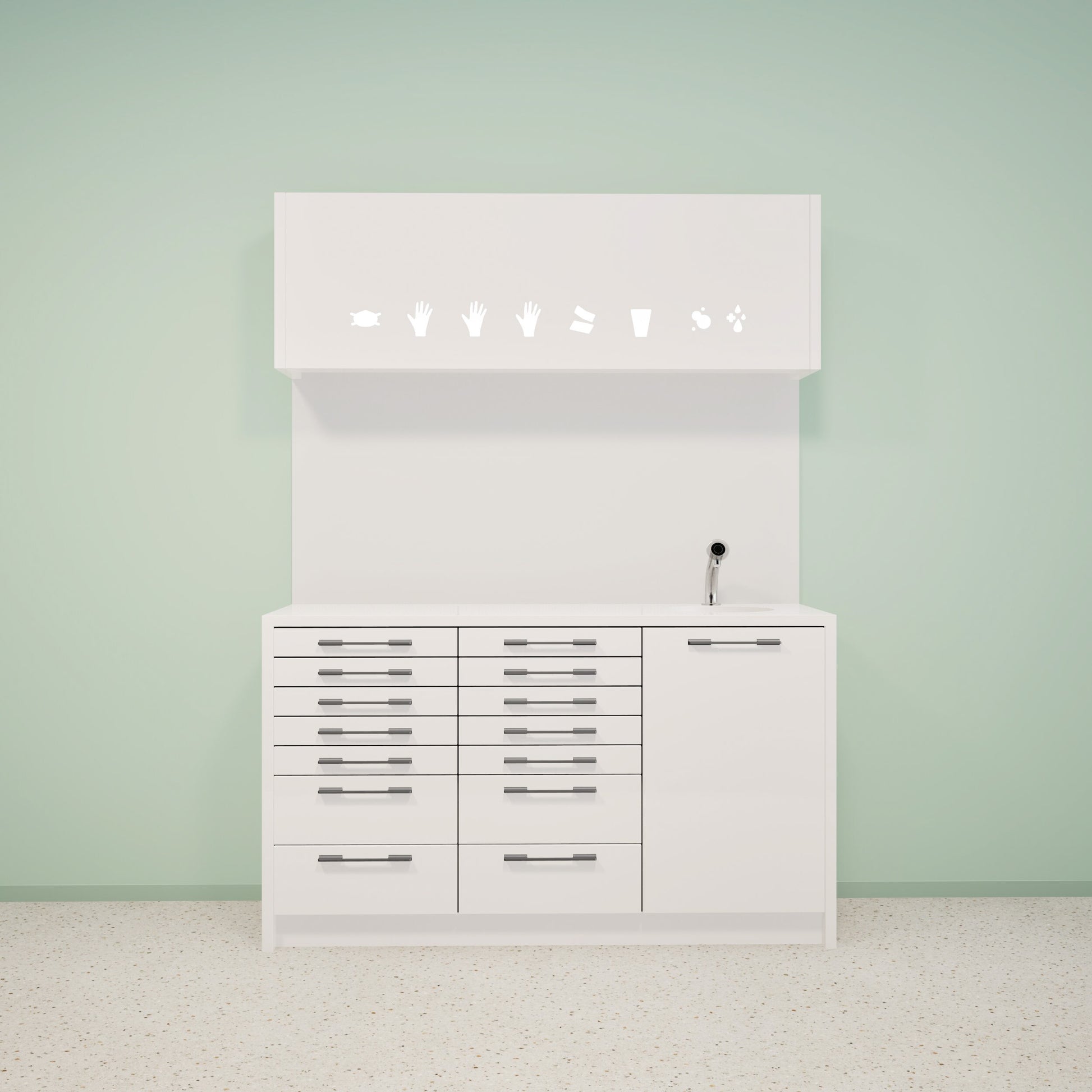 NOVA is a treatment furniture with a sleek 30 mm top and robust side panels, available in both a floating and standing model. The combination of high-quality materials and timeless design makes the NOVA a sustainable and practical choice for any practice. Thanks to the sturdy construction and functional layout, the NOVA offers optimum working comfort and a professional appearance.