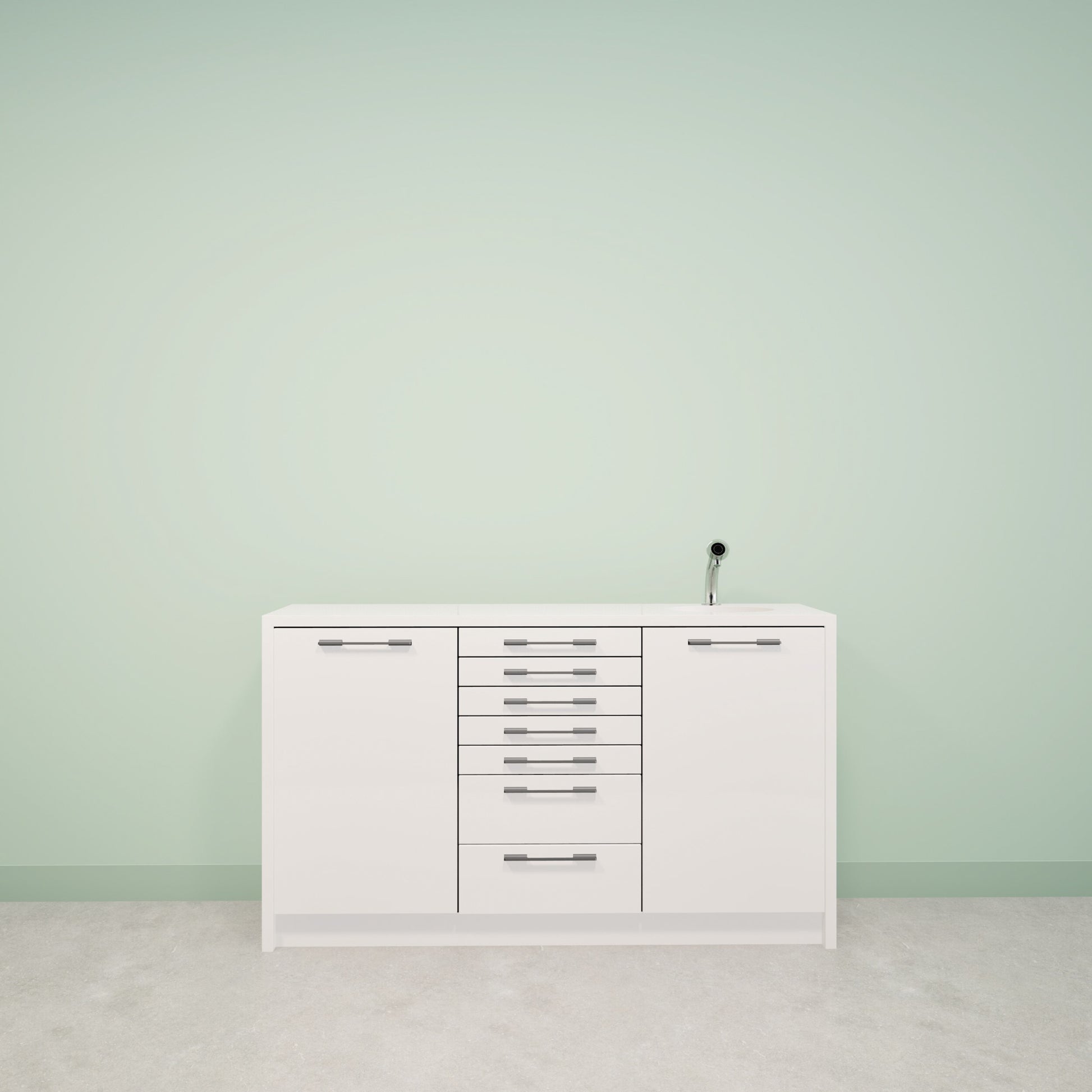 NOVA is a treatment furniture with a sleek 30 mm top and robust side panels, available in both a floating and standing model. The combination of high-quality materials and timeless design makes the NOVA a sustainable and practical choice for any practice. Thanks to the sturdy construction and functional layout, the NOVA offers optimum working comfort and a professional appearance.