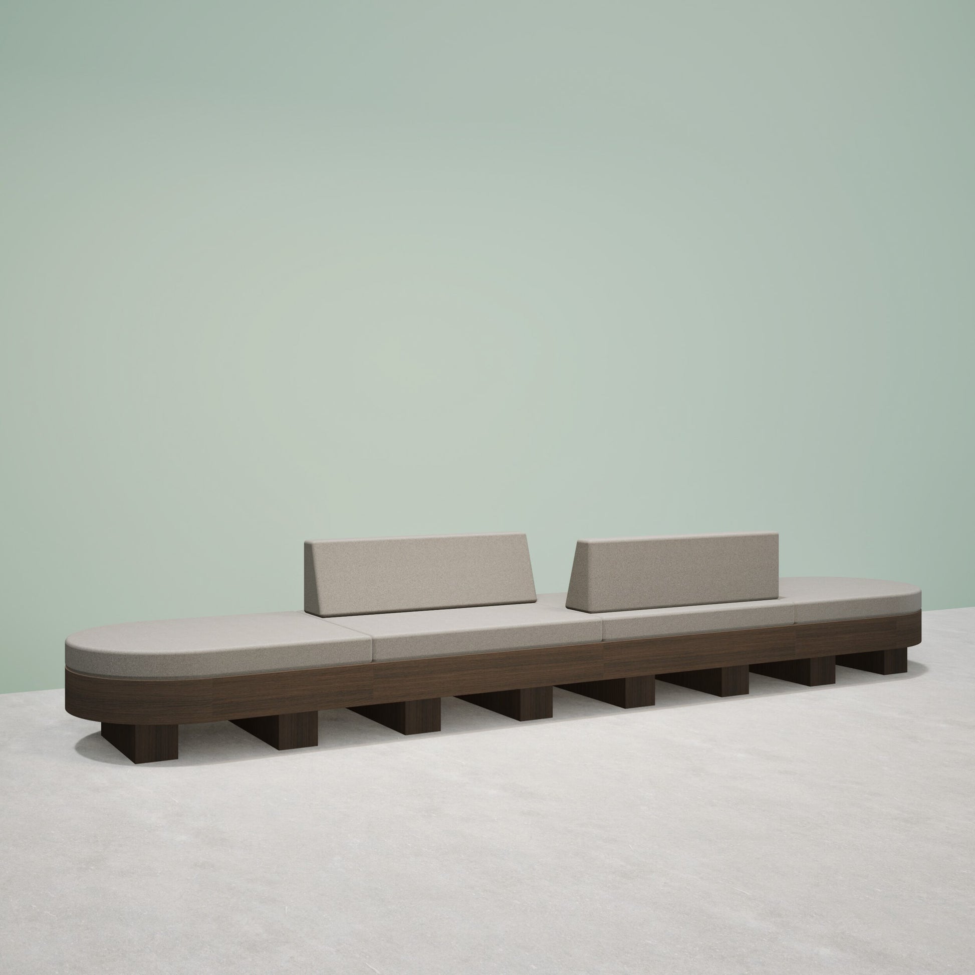 Dit stijlvolle zitmeubel is ontworpen voor comfortabele en overzichtelijke wachtruimtes. De opstelling bestaat uit vier modules: twee identieke eindmodules met een afgeronde zijde en twee centrale modules met rugleuning voor extra ondersteuning. De centrale modules zijn bovendien draaibaar, waardoor de rugleuning eenvoudig aan de andere zijde kan worden geplaatst en verschillende zitopstellingen mogelijk zijn.